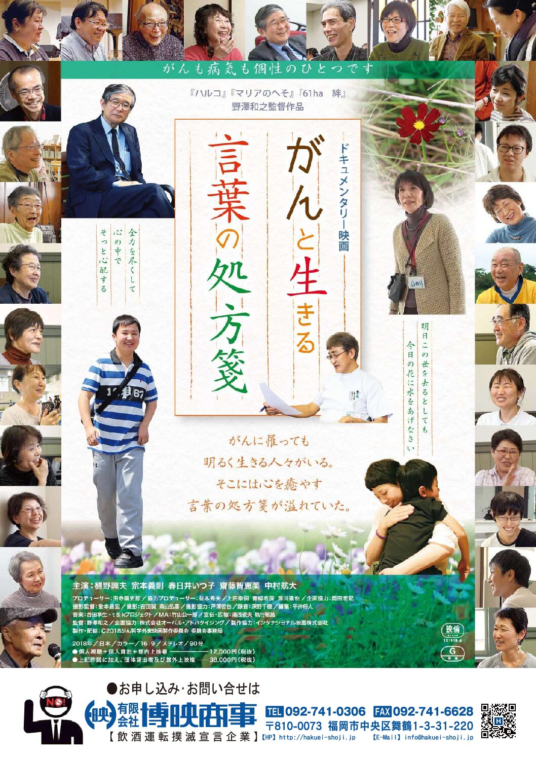 がん患者の苦しみを言葉で癒す「言葉の処方箋」とも言われる「がん哲学外来」と、そこから発展して生まれた「がん哲学外来メディカル・カフェ」をテーマに撮り上げたドキュメンタリー。順天堂大学医学部の樋野興夫教授が、医学と哲学を結びつけて提唱した「がん哲学外来」。そして、そこから発展し、患者たちが対話して悩みを分かち合い、病と向き合う場として生まれた交流の場「メディカル・カフェ」。全国のカフェを回って講演する樋野教授や、それぞれにカフェを開設し、がんにかかっても明るく元気に生きる人々たちの姿を通して、がんとともに生きることへの勇気や人生の希望を見いだしていく。監督は、在日一世を描いた「HARUKO ハルコ」やハンセン病療養所で暮らす夫婦を追った「61ha 絆」などを手がけ、自身もがんを患った経験のある野澤和之。