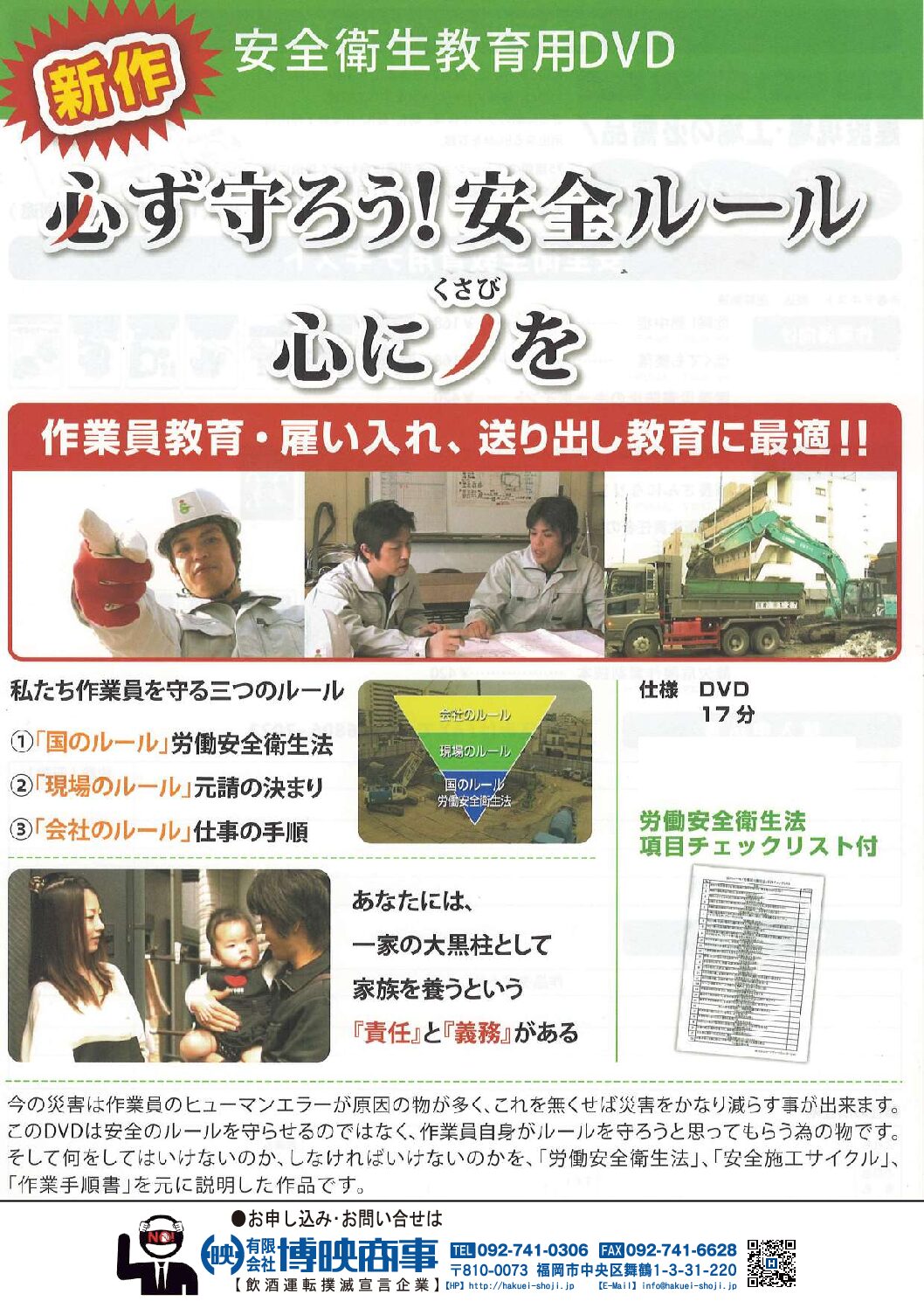 この DVD は、安全のルールを“守らせる”のではなく、作業員自身が「ルールを守ろう」と思ってもらうためのものです。