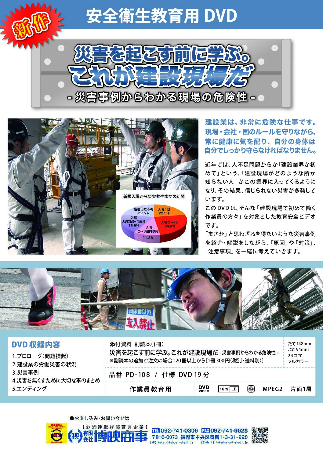 この DVD は、そんな「建設現場で初めて働く作業員の方々」を対象とした教育安全ビデオです。